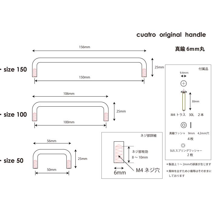 サイズ100mmは引き出しの取っ手に丁度良い長さです。